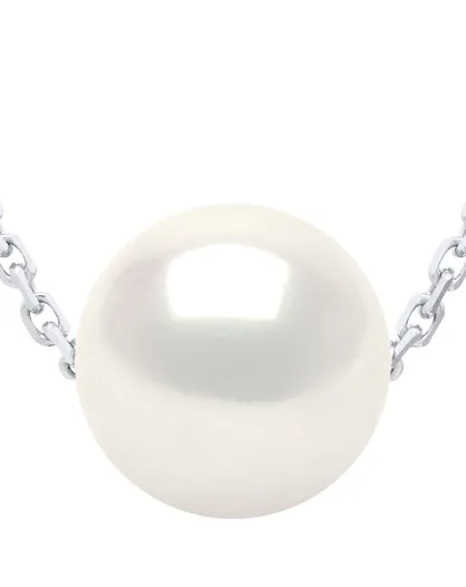 Halskette aus Rhodiumsilber und natürliche weiße, runde Süßwasser-Zuchtperle