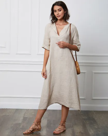 Beiges Granel-Kleid aus 100% Leinen