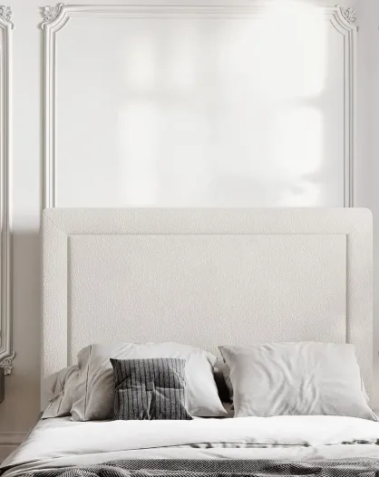 Marie Kopfteil aus beigem lockigem Samt, 200 x 120 cm