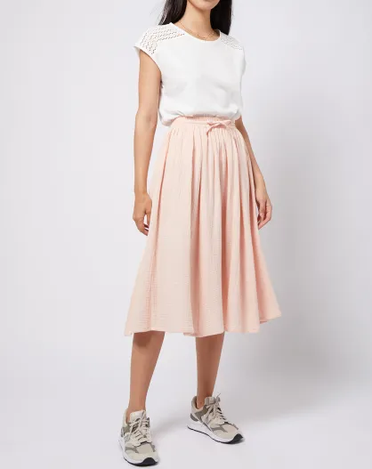 Midirock aus Baumwollgaze in Hellrosa/Pfirsich
