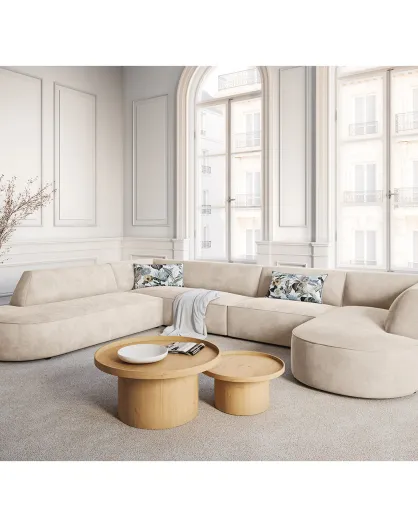Rechtes Panorama-Ecksofa Velours Charles 7 Seater hellbeige - 366x273x69 cm