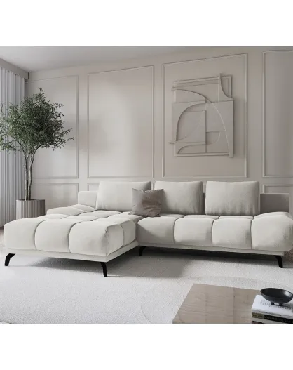 Faltbares Ecksofa für links mit Kofferraum aus Cirrus-Samt, 5-Sitzer, hellbeige — 290 x 182 x 90 cm