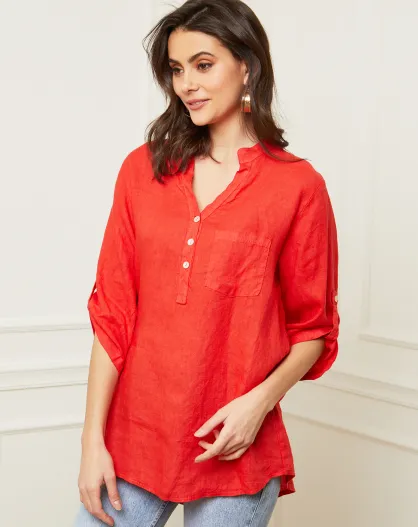 Rote Bluse Bjorg aus 100% Leinen