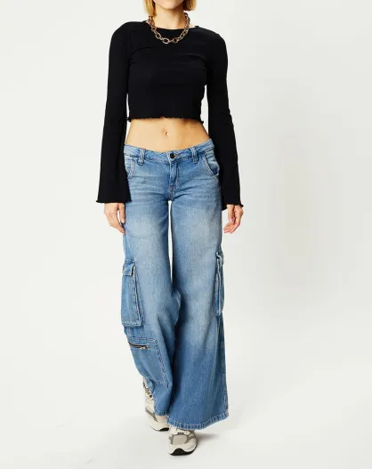 Blaue Pfützen-Cargojeans mit tiefem Bund