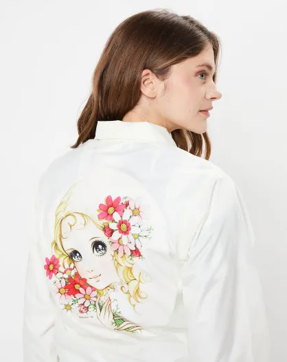 Schmale Damenjacke mit sehr hellgelbem Rückenmuster
