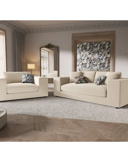 Trendiges 3-Sitzer-Sofa aus Samt, 220 x 122 x 72 cm, Beige