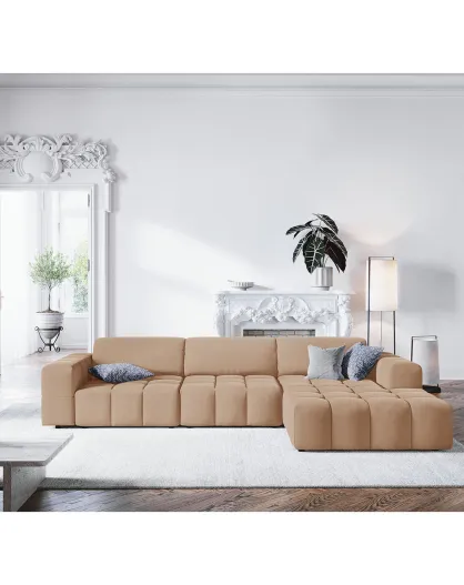 Velours Luc Ecksofa für 4 Personen, dunkelbeige, für rechts, 284 x 166 x 70 cm