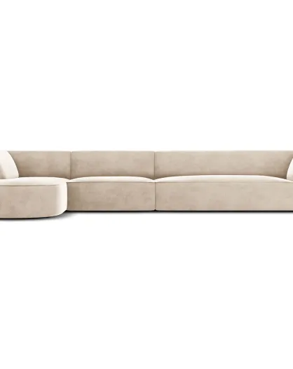 Linkes Ecksofa Velours Charles 5 Sitzer hellbeige - 366x180x69 cm