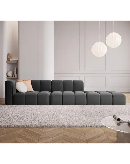 Adams Modulares gerades 4-Sitzer-Sofa aus grauem Samt, 293 x 96 x 70 cm