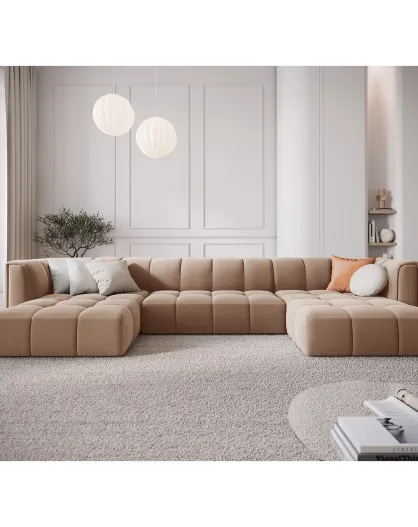 Adams Velvet Panorama-Sofa 5-Sitzer, beige - 346x160x70 cm