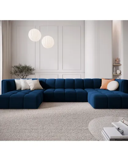 Adams Velvet Panorama-Sofa 5 Sitzer, 346x160x70 cm, Königsblau