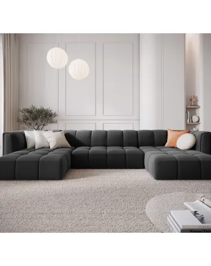 Adams 5-Sitzer-Panoramisofa, grauer Samt, 346x160x70 cm