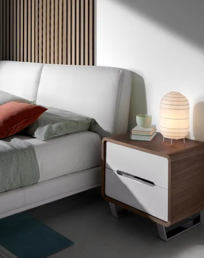 Nachttisch mit 2 Schubladen aus lackiertem Nussbaumholz/weiß/verchromtem Stahl - 66x48x48 cm