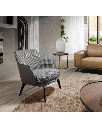 Sessel aus Stoff mit Hahnentrittmuster und Rückenlehne aus grau/schwarzem Kunstleder - 75x75x82 cm