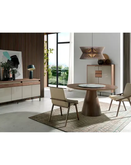 Runder Esstisch mit drehbarer Mitte Nussbaum/Weiß/Grau - 135x135x75 cm