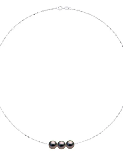 Halskette aus Weißgold und schwarze runde Tahiti-Zuchtperlen