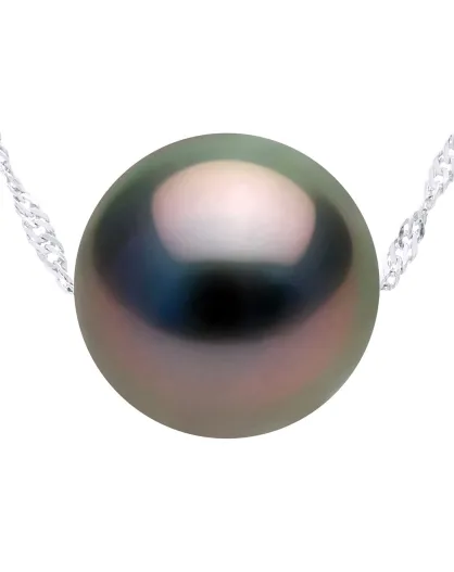 Runde Tahiti-Zuchtperlenkette aus Weißgold und Schwarz