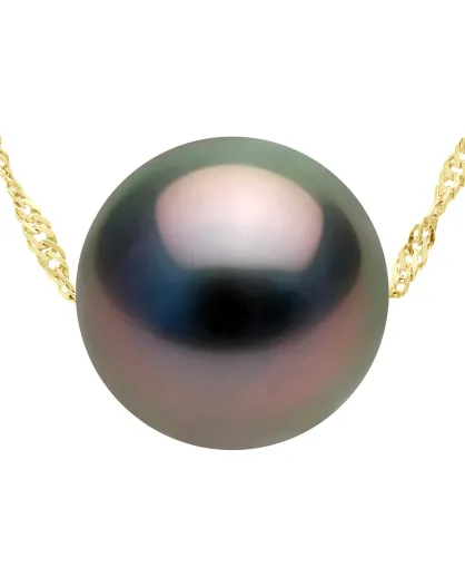 Halskette aus Gelbgold und schwarze runde Tahiti-Zuchtperle
