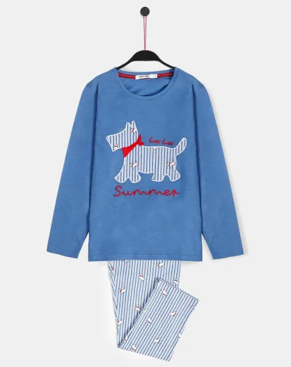 Pyjama Lou Lou Sommer-Langarmshirt und blaue Hose