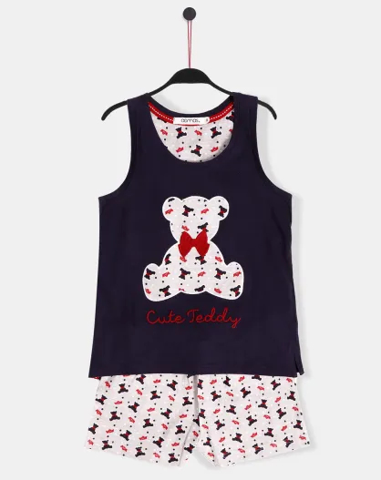 Pyjama Marineblaue T-Shirts und Shorts im Mädchenschnitt