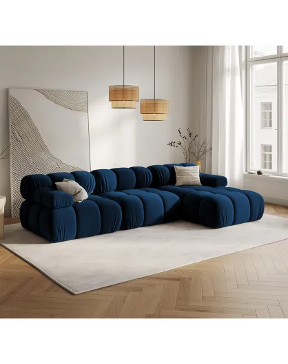 Tropea Modulares gerades 4-Sitzer-Sofa aus Samt, 285 x 157 x 63 cm, Königsblau