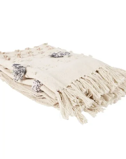 Getuftete Decke mit Fransen weiß/grau - 125x150 cm