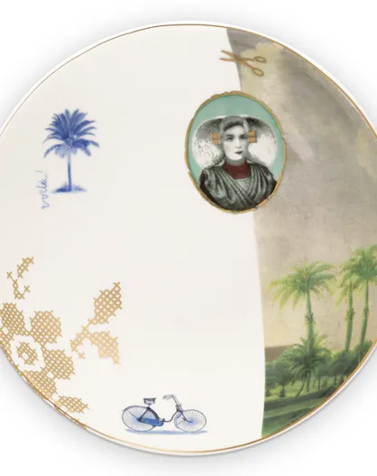Heritage Speiseteller aus weißem Palmenmotiv, aus Porzellan, D.20,8 cm, 6 Stück