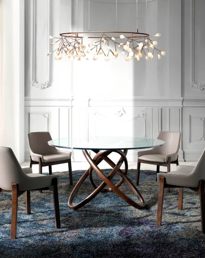 Runder Esstisch mit Nussbaumholz/transparenter Glasplatte - 150x150x75 cm