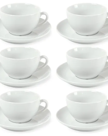6 weiße Kaffeetassen und Untertassen aus Como-Porzellan — 28 cl