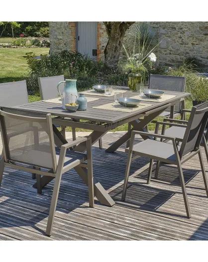 FLORIDE Gartengarnitur mit Verlängerung+6 stapelbare Quarzsessel