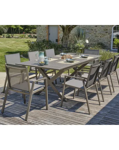 FLORIDE Gartengarnitur mit Verlängerung + 8 stapelbare Quarzsessel