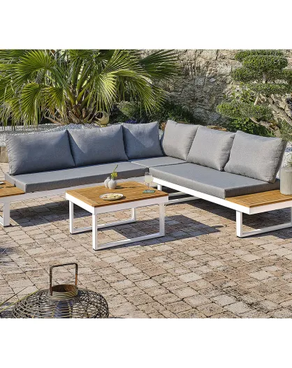 Miyako 5-Sitzer-Gartenmöbel aus Aluminium und weißer Akazie