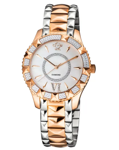 Venice Quarzuhr für Damen aus Stahl und Diamanten, 0,04 Karat Silber/Rotgold