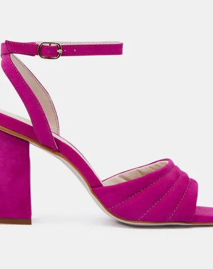 Fuchsiafarbene Sandalen aus gestepptem Leder - Absatz 8 cm