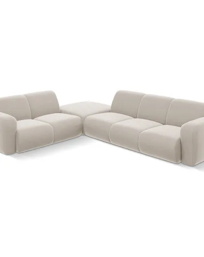 Lola Ecksofa für 6 Personen, hellbeiger Samt, für links, 315 x 250 x 72 cm