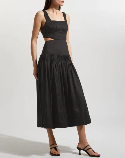 Schwarzes Midikleid aus plissiertem Leinengemisch mit Audette