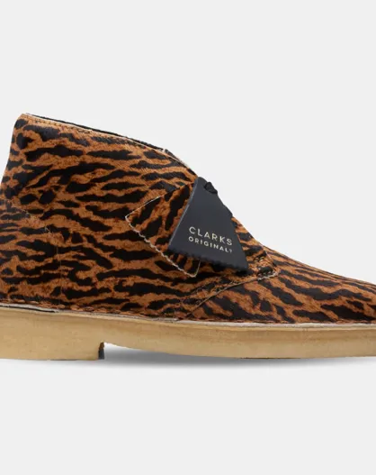 Braune Wüstenstiefel aus Samt aus Leder mit Tierdruck