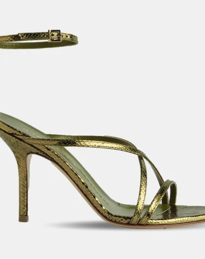 Khakifarbene Sandalen aus Schlangenleder - 9 cm Absatz