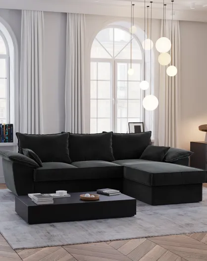 Wandelbares rechtes Ecksofa Sasha aus anthrazitgrauem Samt - 257x93/168x88 cm
