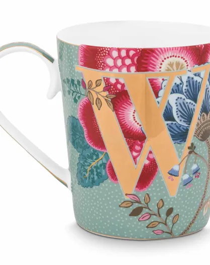 Alphabet Floral Fantasy W Porzellantasse, 350 ml, Blau