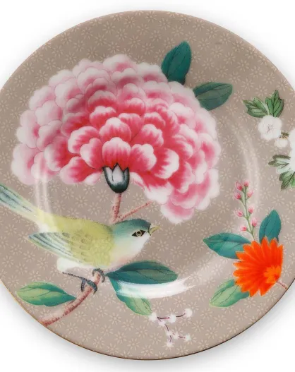Kleine Ofenteller aus Porzellan mit blushing birds, Durchmesser 12 cm, Khaki, 6 Stück