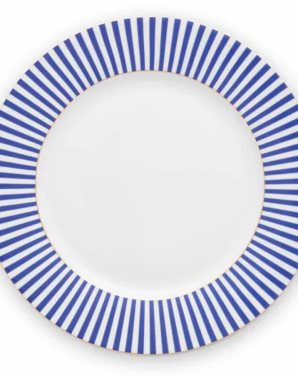 6 blaue Porzellan-Brotteller von Royal Stripes, D.17,4 cm