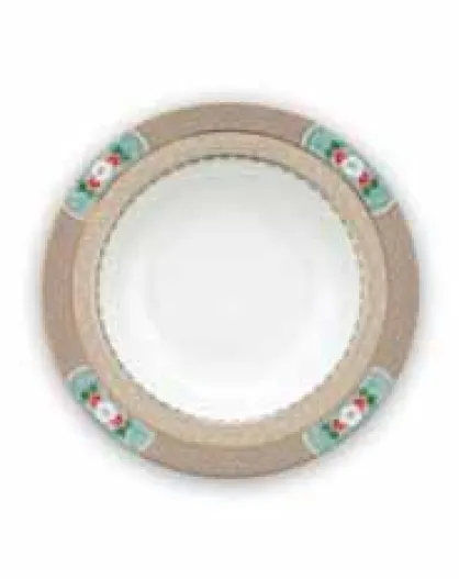 6 hohle Porzellanteller in Khaki Blushing Birds, D.21,7 cm