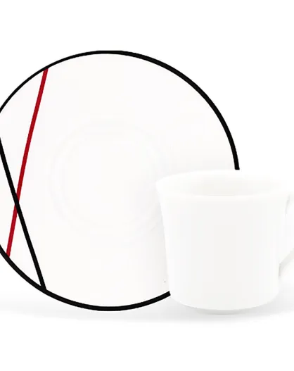 6 weiße Bistot-Porzellan-Kaffeetassen mit Untertassen — 70 ml