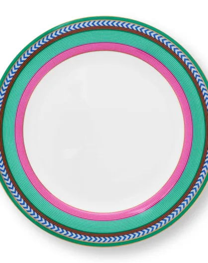 6 Pip Chique Dessertteller aus rosa/grünem Porzellan, D.23 cm