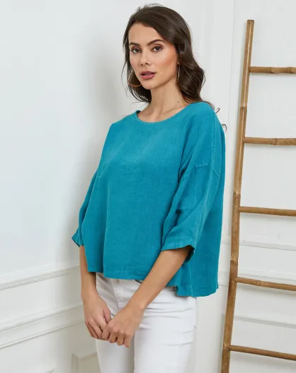 Grünes Georginia-Top aus 100% Leinen