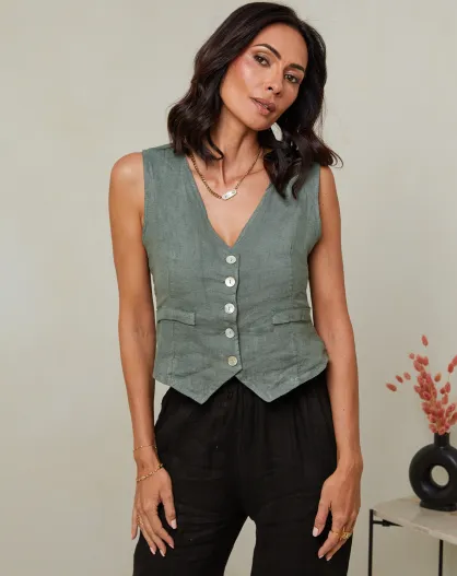 Lorie khakifarbener Cardigan aus 100% Leinen