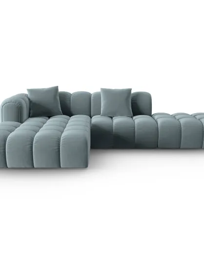 Clotilde Velours Clotilde 4-Sitzer-Ecksofa, offen, links, 294 x 177 x 70 cm, hellblau