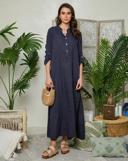 Agathe Marine Kleid aus 100% Leinen