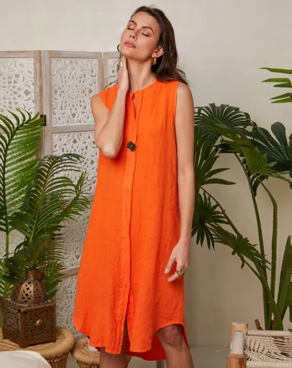 Cloe orangefarbenes Kleid aus 100% Leinen